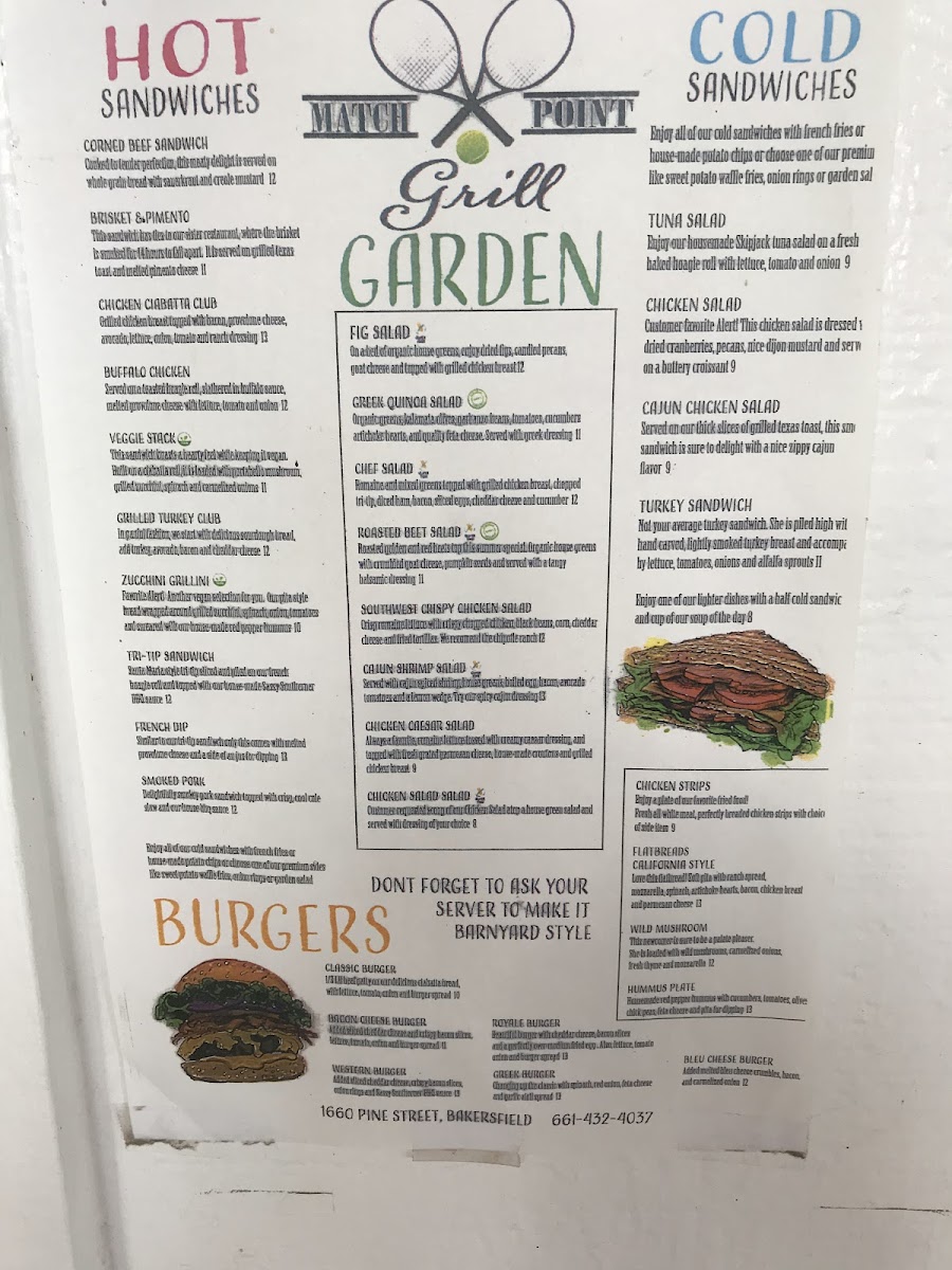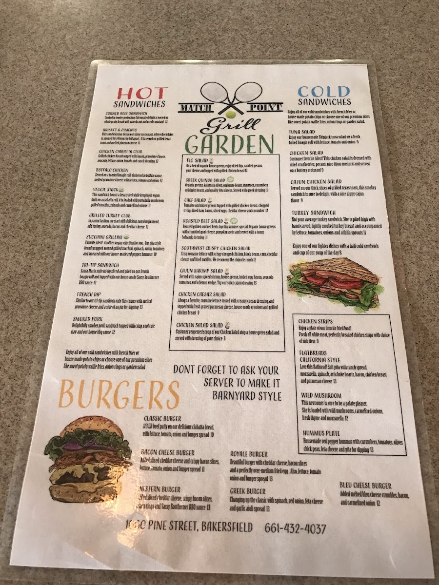 Romaine and mixed greens topped with grilled chicken breast, chopped tri-tip, diced ham, bacon, cheddar cheese, boiled egg, and cucumbers with a dressing of your choice.